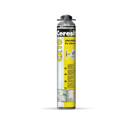 Полиуретановый клей CX 10 представляет собой однокомпонентную расширяющуюся монтажную пену, отверждающуюся под действием влаги, и предназначен для выполнения широкого спектра монтажных работ
