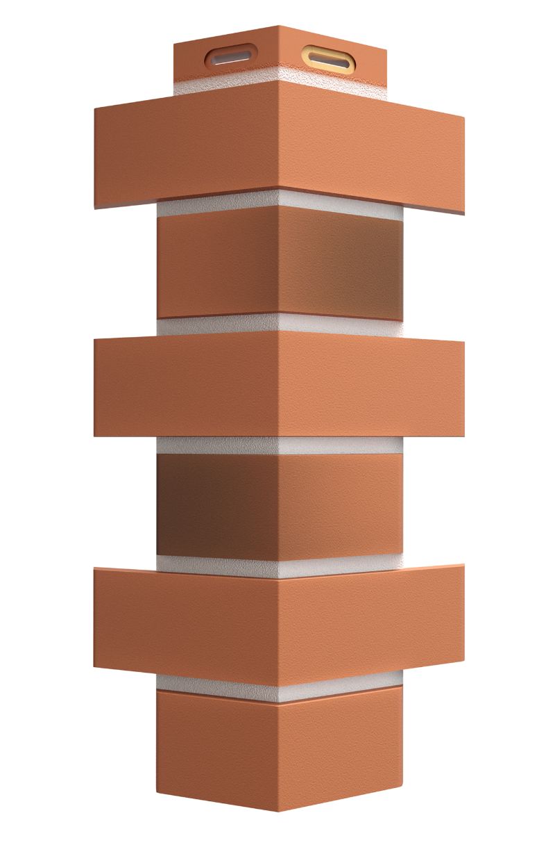 Фасадный угол используется для закрытия концов панелей на внешних углах дома. Имитирует фламандскую кладку и выпускается в цвет панелей.
