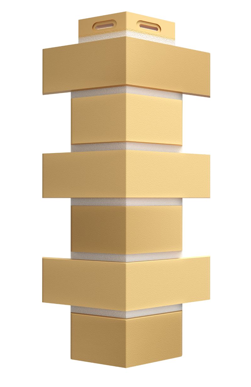 Фасадный угол используется для закрытия концов панелей на внешних углах дома. Имитирует фламандскую кладку и выпускается в цвет панелей.